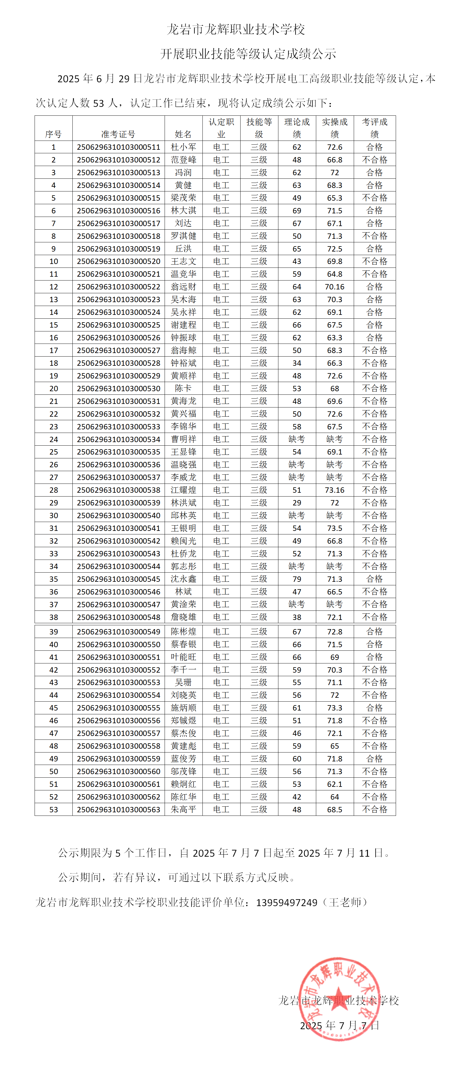成績公示2025.6.29